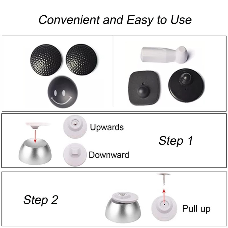- Easy to use: simply insert the included needle into the clothing and press it towards the inner hole of the safety label. Then the flat head pin is firmly plugged together with your tags. Easy removal with our magnetic remover saves you a lot of time and effort.