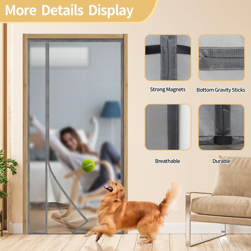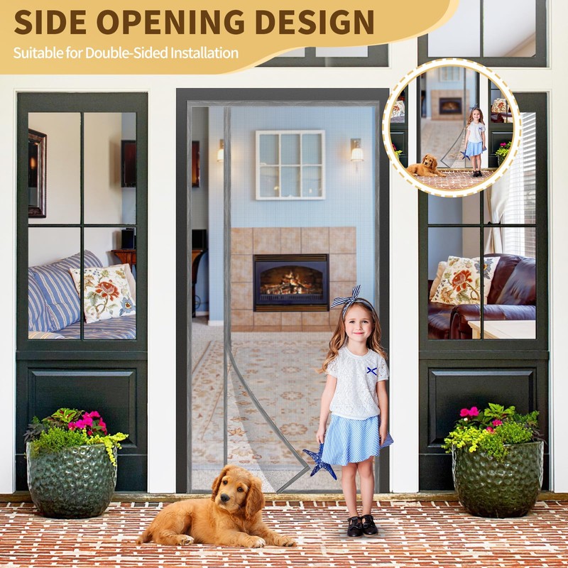 • 【Hands Free Design】The screen door with automatic magnets closure is easy to open or close whether your hands full, because the Door Curtain is embedded with more powerful magnets.