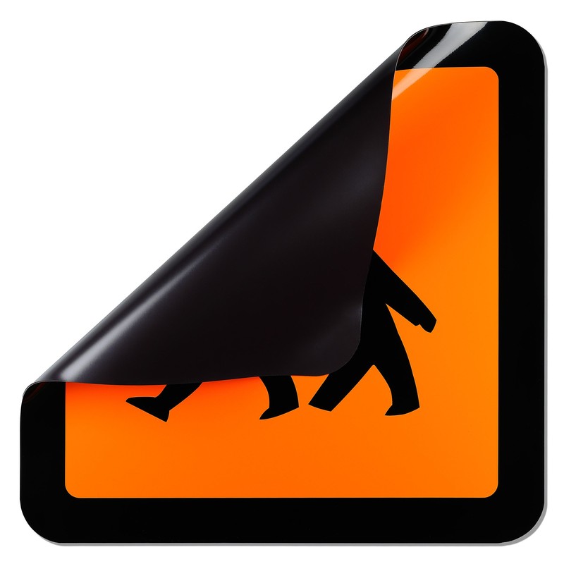 UV and weather-resistant labelling on orange coated, flexible permanent magnet film