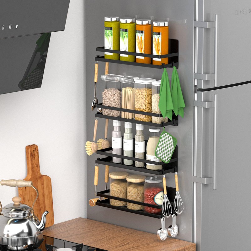 • Easy Installation: The magnetic spice rack mounts to the refrigerator door or any metal surface with no drilling required.