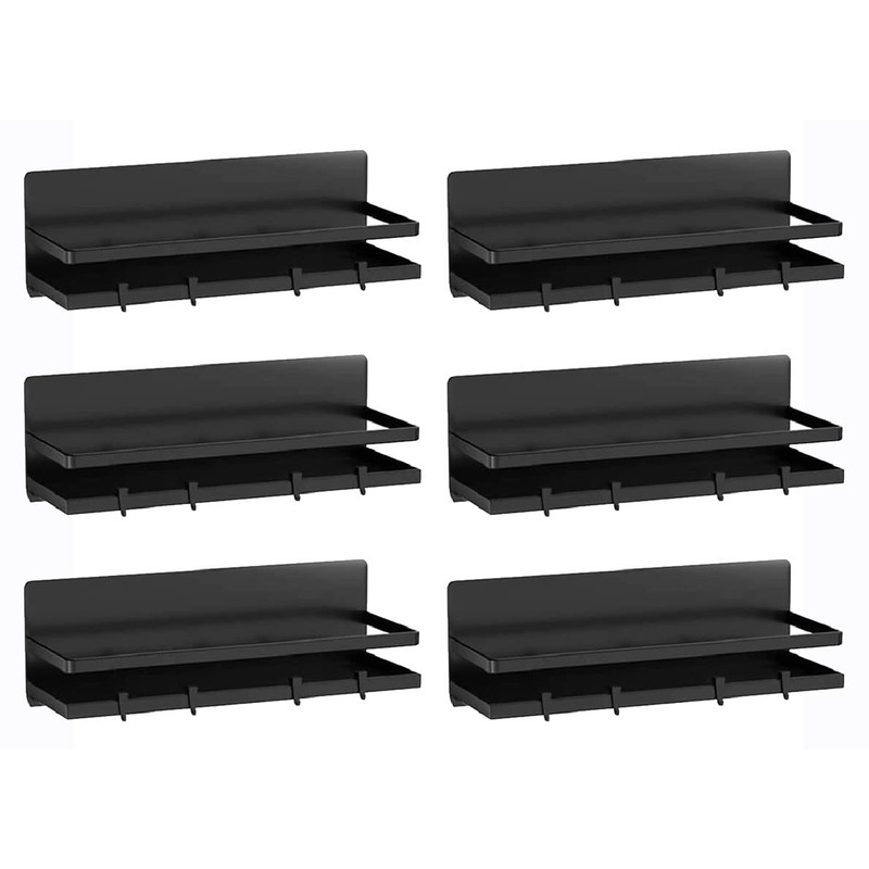 Magnetic Spice Rack for Refrigerator,Magnetic Shelf Fridge Organizer for Kitchen, Spice Rack Space Saver Container for Kitchen/Apartment, Drill Free, Black 6 Pack
