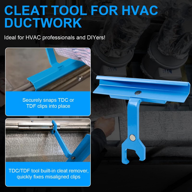 - 【Perfect for HVAC Ductwork】Designed for sheet metal professionals, this cleat tool securely snaps TDC or TDF clips into place without bending or scratching duct joints. Sheet metal tool is ideal for duct connections, ensuring airtight seals in commercial and residential HVAC systems.