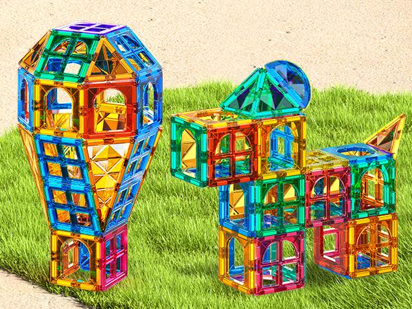 - Magnetic Tiles: Each block features magnetic tiles that allow children to build and explore.