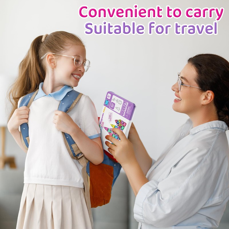 - Magnetic Tiles Compact and portable: Adopting a compact and lightweight design, it is very suitable for carrying during travel, such as taking a plane, train, car, or waiting in a restaurant for children to play with. It comes with detailed instructions and paper cards to guide storage. The metal box packaging is convenient for storage and can also serve as a base for construction.