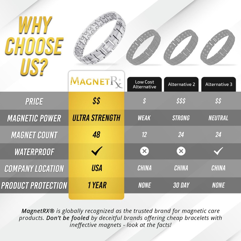 - ☑️ 100% MONEY BACK GUARANTEE - MagnetRX is the trusted name for magnetic products. If you are not satisfied with your MagnetRX purchase, simply contact us and we will refund you the full amount. You have nothing to lose, get your bracelet now!