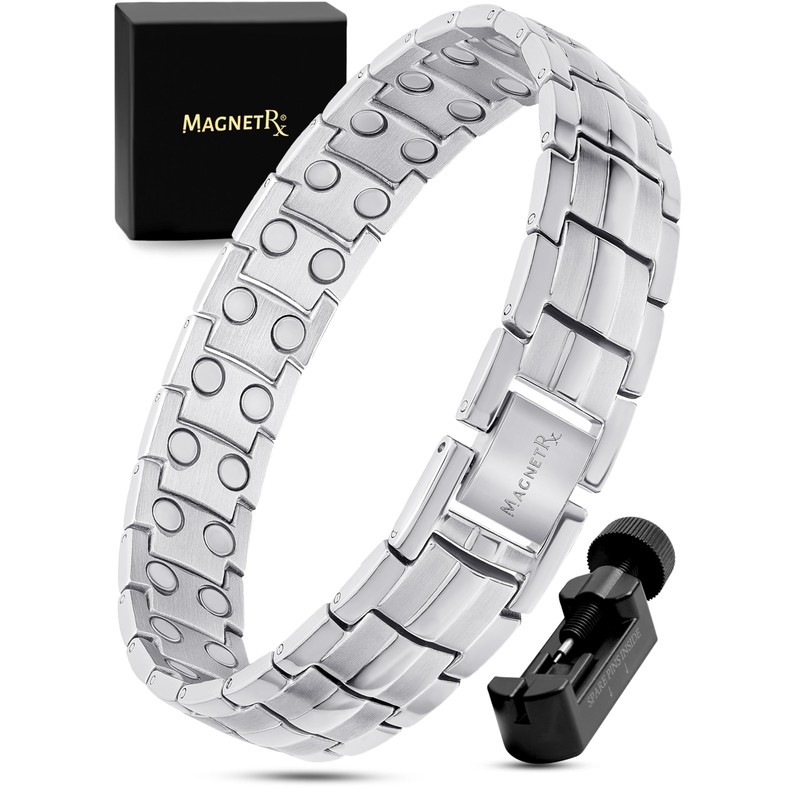 - Top quality: carefully made from medical stainless steel (316L), which is hypoallergenic, durable and waterproof. This high-quality MagnetRX men's bracelet has an elegant silver coating (PVD).