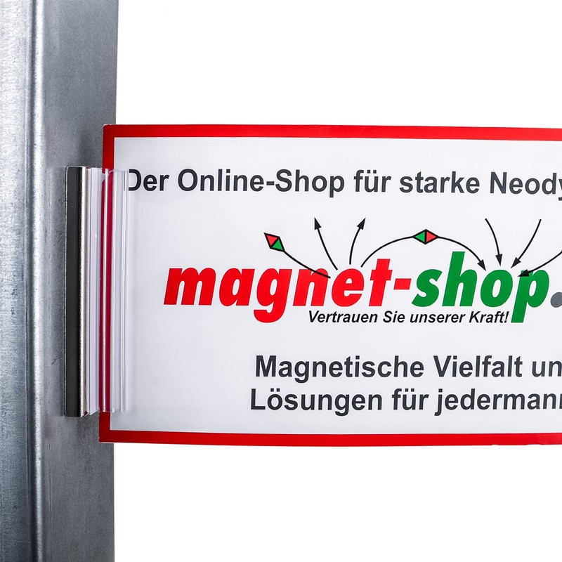 - Quick and flexible: the holders can be easily attached and thus offer the possibility of attaching advertising materials to all magnetic adhesive surfaces