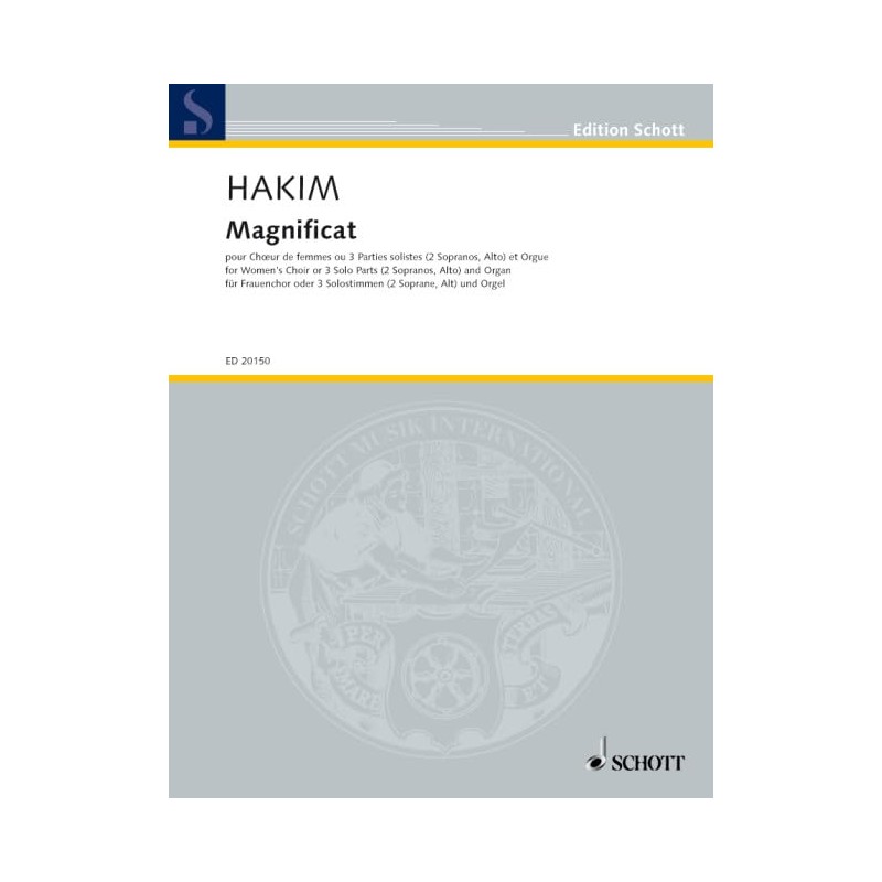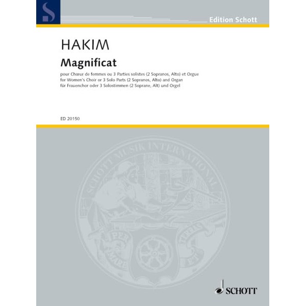 Magnificat: female choir or 3 solo parts (SSA) and organ. Partition de chœur.