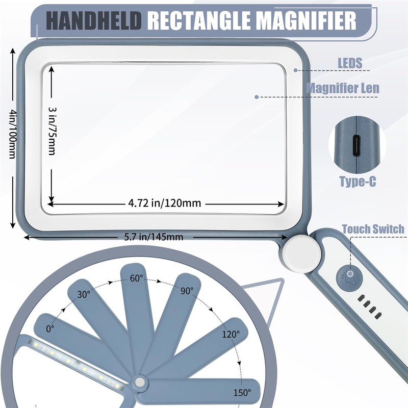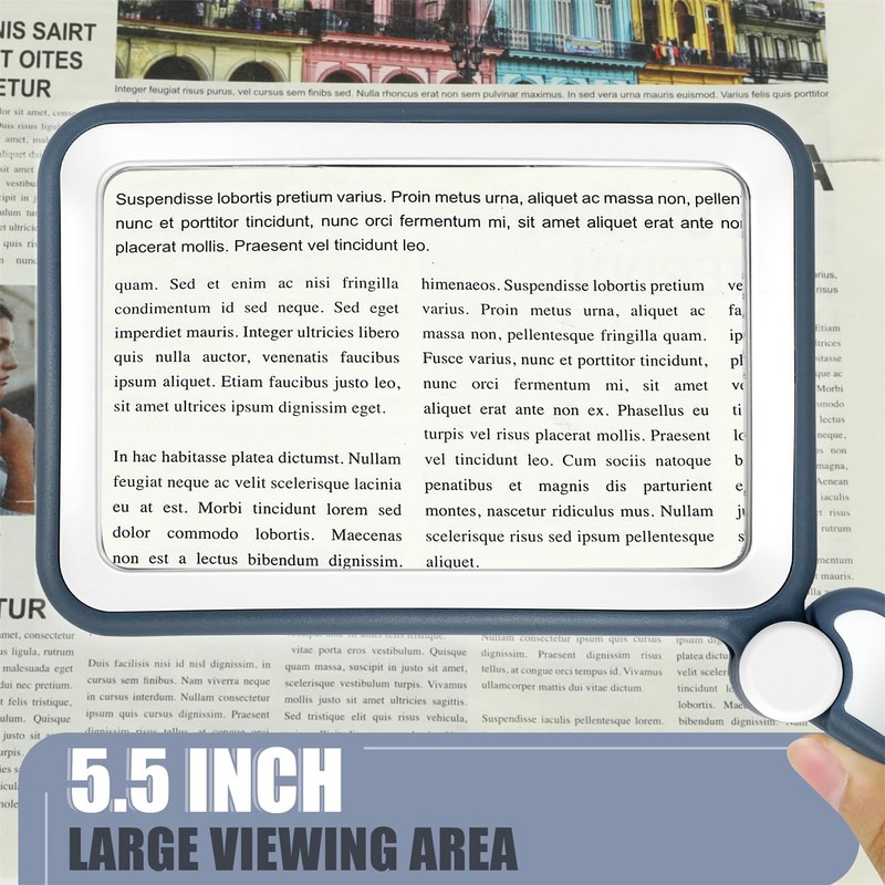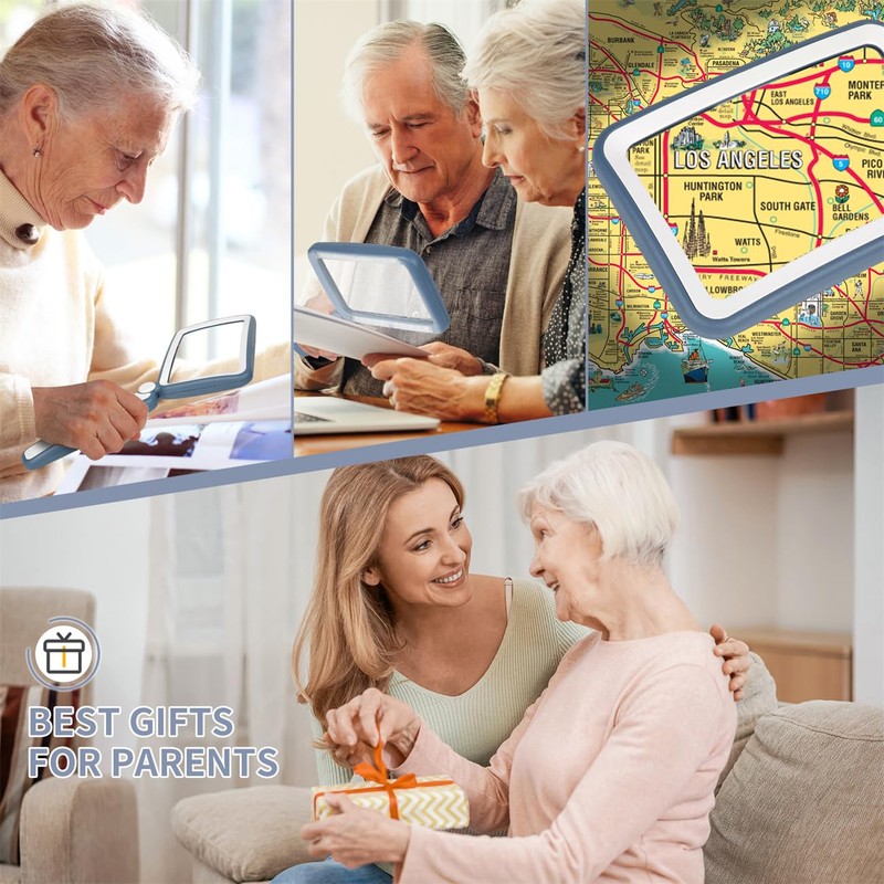 • Broader Visual Areas: Our magnifying glass feature rectangular lenses that are easier to read and improve the edge distortion common with round lenses. The improved and enlarged 4.7" x 2.95" lens provides a larger viewing area. Whether you're reading a book, looking at a map, or working on a detailed project, your reading experience will be smoother and more enjoyable.
