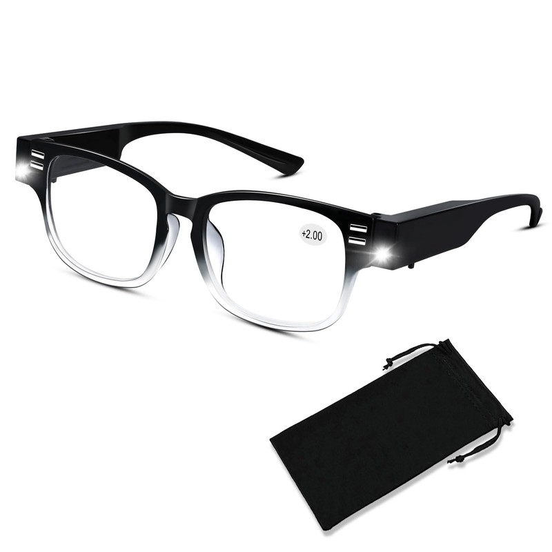 These reading glasses with lights are made of high quality material, fashion classic design, easy to carry or store. Unlike traditional reading glasses, there are built-in dual bright LED lights, which can help you see brighter and clearer in a dim environment and keep your hands free! Great for Hobbies, Reading, Close Work, and Crafts.