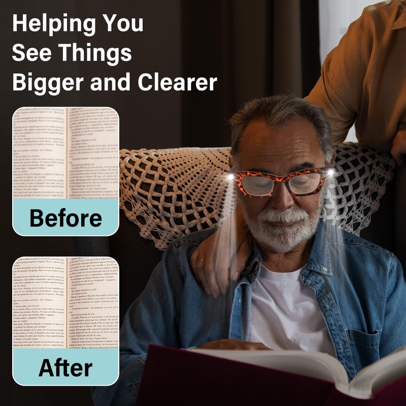 - [Lighted Reading Glasses Rechargeable] The package includes: 1 x reading glasses with lights,1 x micro USB charging cable,1 x cleaning cloth,1 x leather storage bag.The multifunctional reading glasses are ideal for Christmas and birthday gifts for grandparents, friends, relatives, and parents, and the best choice for Father's Day or Mother's Day gifts.Reading glasses with LED lights, give clear bright vision in the dark,don't have to worry about not seeing clearly,and let your love be with them.