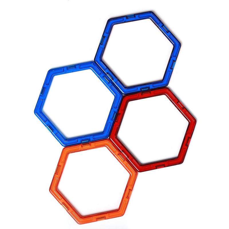 MAGNIKON Magnetic Building Blocks Replacement Set, Magnetic Building Blocks, Children's Toy from 3 Years, Gift for Girls, Boys, Montessori Toy (Hexagons Pack of 4)