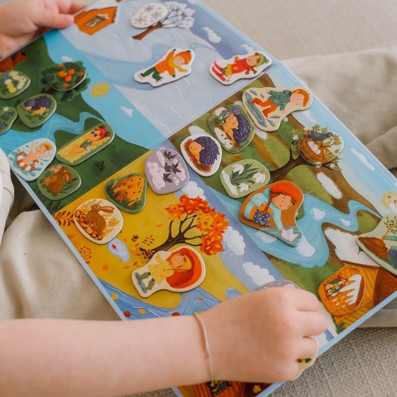 MAGNIKON Magnetic Game with Magnets - Motor Skills Toy with Large Playing Field for Employment when Driving - Game for On the Go with Magnetic Puzzles - Magnetic Book from 3 Years (Seasons)