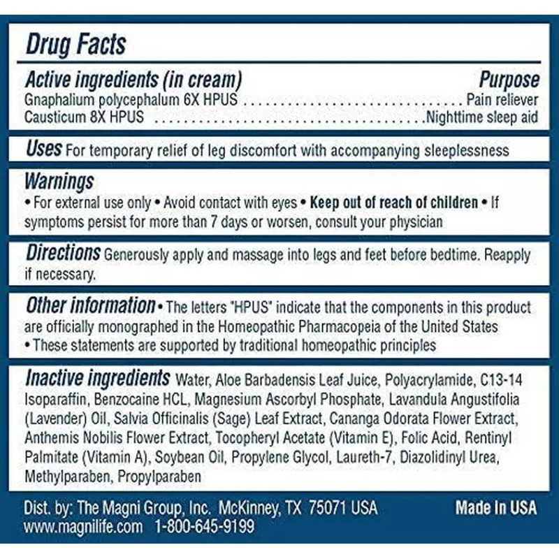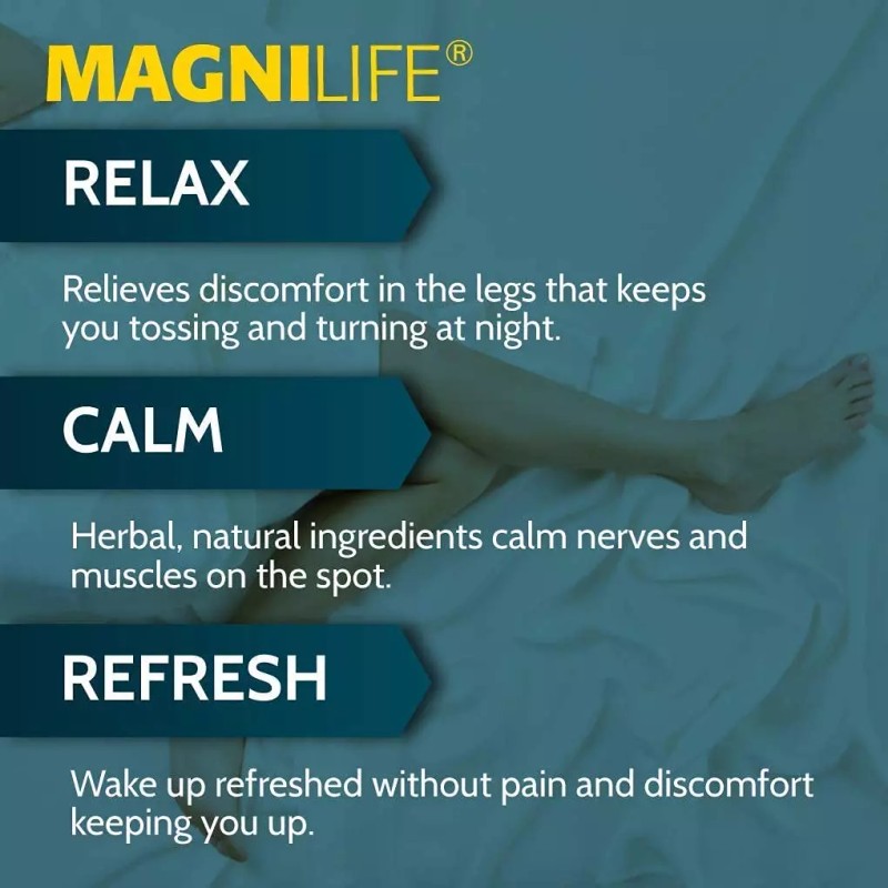 - NATURAL RELIEF - MagniLife penetrating leg cream helps to relax and soothe the uncomfortable sensations that can make it difficult to fall asleep. Relaxing Leg Cream is a go-to when your legs just won’t stay still. Helps to calm the discomfort and restlessness so that you can get the sleep you need and wake up feeling refreshed and ready for whatever the day brings.