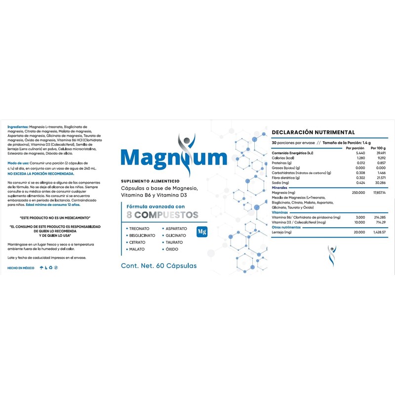 - >>Después de un análisis exhaustivo de las diferentes formas magnesio disponibles, nuestro análisis nos llevo a desarrollar MAGNIUM, que cuenta con 8 formas de magnesio las cuales en conjunto aportan una adecuada dosis de magnesio elemental, dichas formulas fueron elegidas por su biodisponibilidad superior y sus excelentes beneficios para la salud.