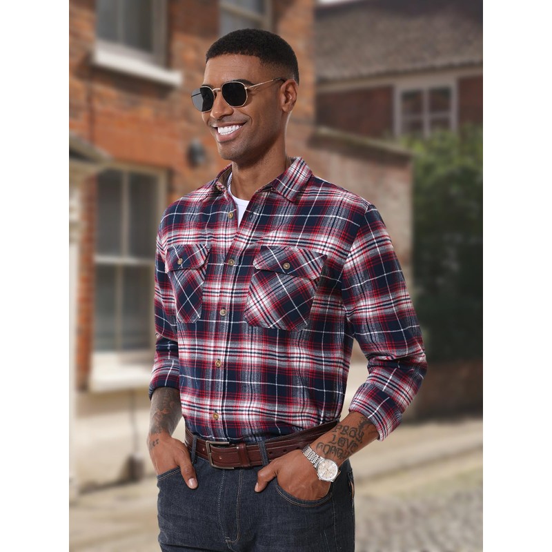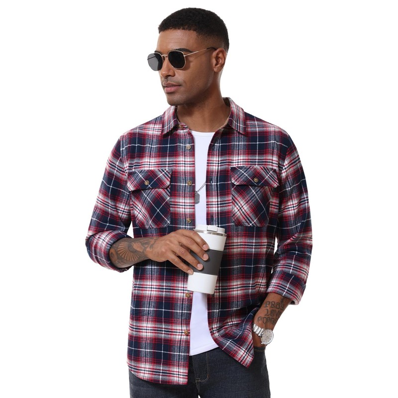 - Design:The flannel shirt is designed with 2 flap button chest pockets,adjustable button cuffs,and rounded hem.