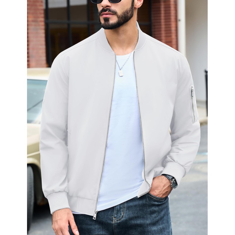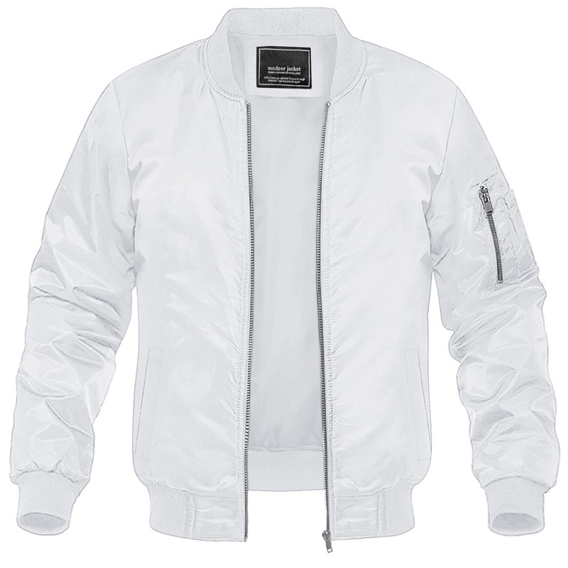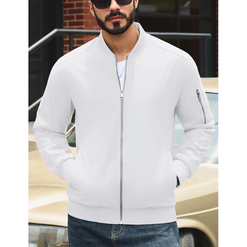 MAGNIVIT Men's Lightweight Fall Bomber Jacket Windbreaker Jacket Softshell Jacket Coat Casual Jacket White