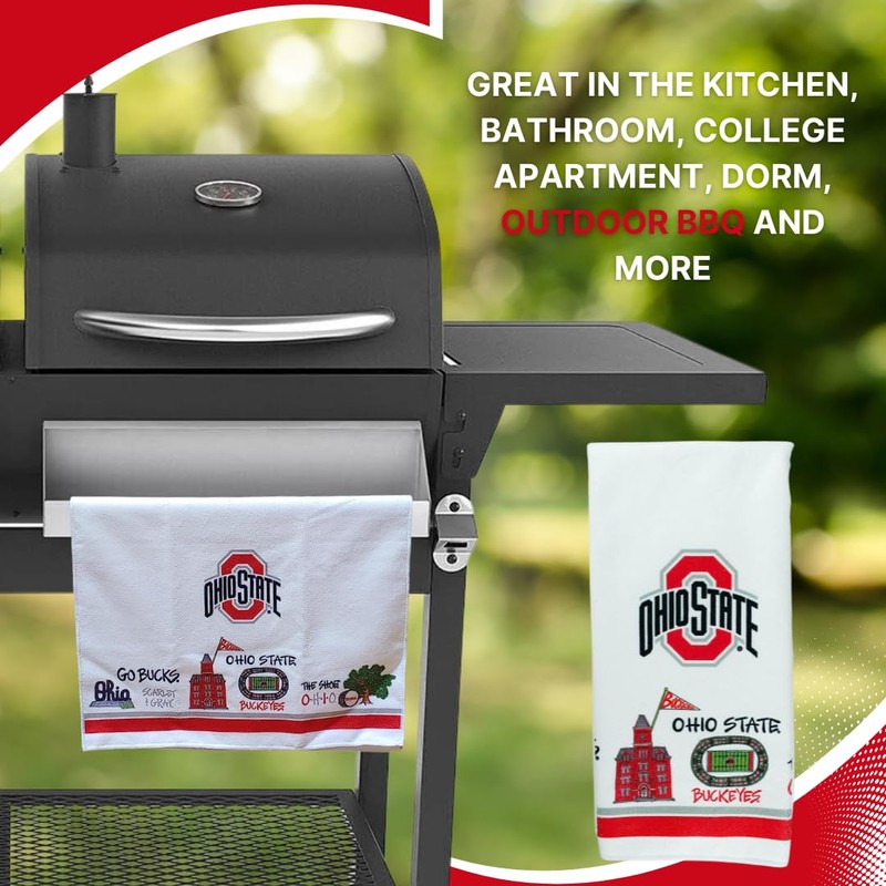 Magnolia Lane Ohio State University Big 10 Kitchen Hand Towel OSU Campus Icons- Reusable Cleaning Cloth- Microfiber Texture, Super Absorbent- Ideal for Student, Alumni, Housewarming