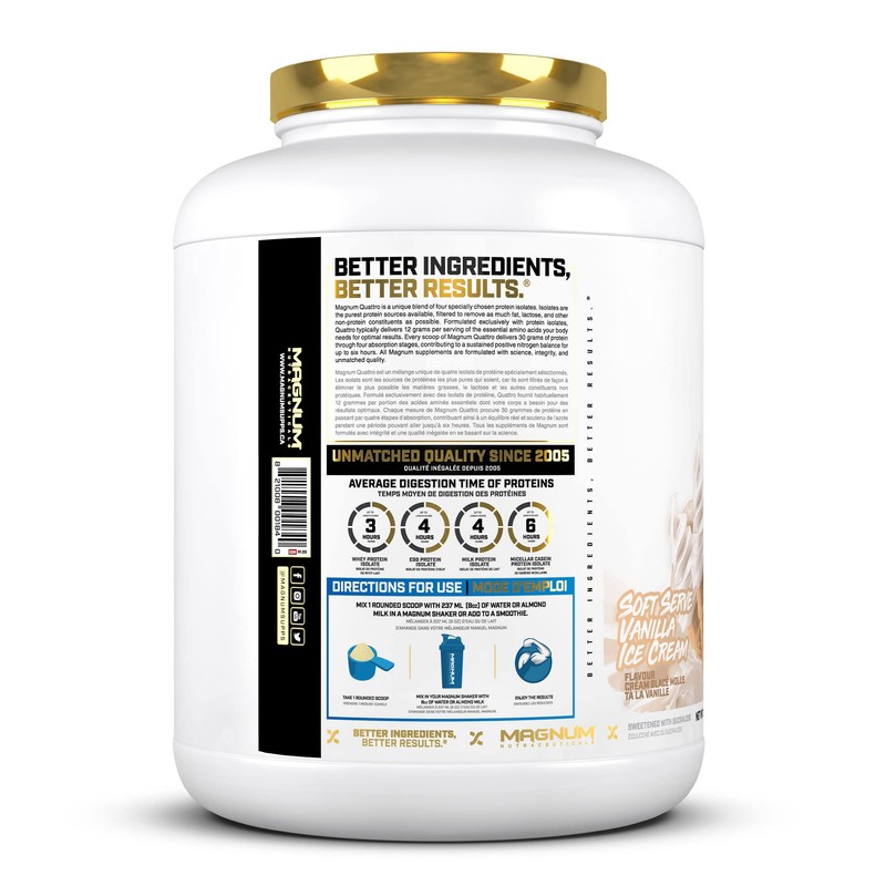 Magnum Nutraceuticals Quattro Whey Protein Powder, Vanilla Soft Serve Ice Cream 4lb – Premium Protein Isolate Blend for Muscle Growth & Recovery