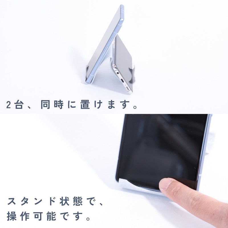 - Functionality: 1. Simple and easy to use to stand your smartphone just by placing it. 2. The angle of the smartphone can be adjusted according to the location you place it. 3. It is also possible to stand 2 cars. 4. Touch the bottom of the screen so you can operate it while it is in a stand. Even though it's small, it's easy to use