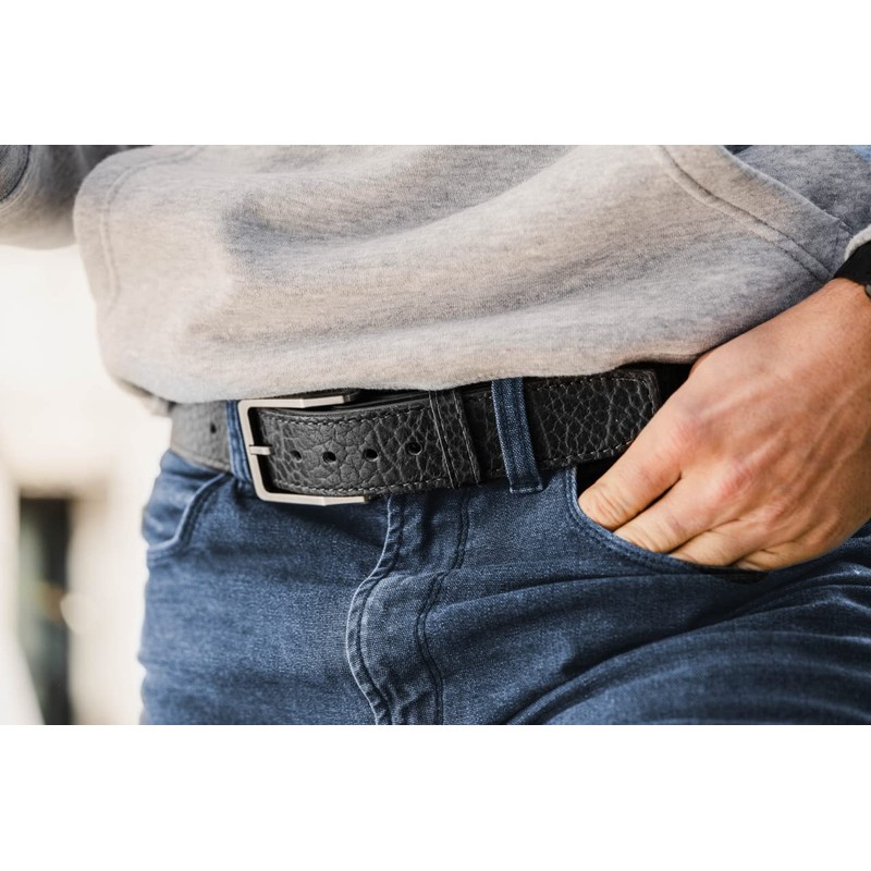 - Includes an easily removable buckle, engineered with a sleek profile design that sits flat against the waist and helps reduce printing when you’re carrying; Comes in even sizing from 32-46 inches and in two color: Black and Chocolate; Made in the USA