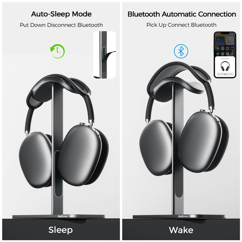 - 【Let Headphones Hibernate】This stand has an intelligent hibernation mode. No need to adjust the telescoping lever of your headphones, when your headphones are put on the stand automatically disconnects from the Bluetooth connection and enters the ultra-low power mode to protect your headphones battery and reduce battery drain. Note: This feature is only available for AirPods Max