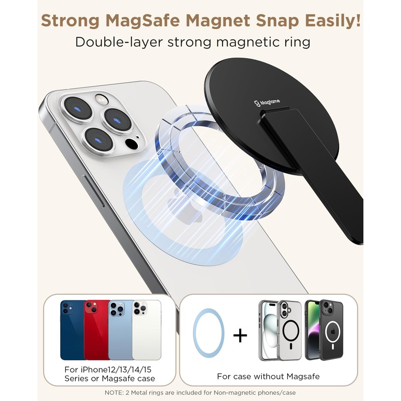 - Strong Magnetic Snap: Easy On, Easy Off—Instantly snaps on to your Mag, Safe Phone or magnetic case with a strong hold—and just as easily snaps off when you're ready to switch it or store it. No sticky mess any more!