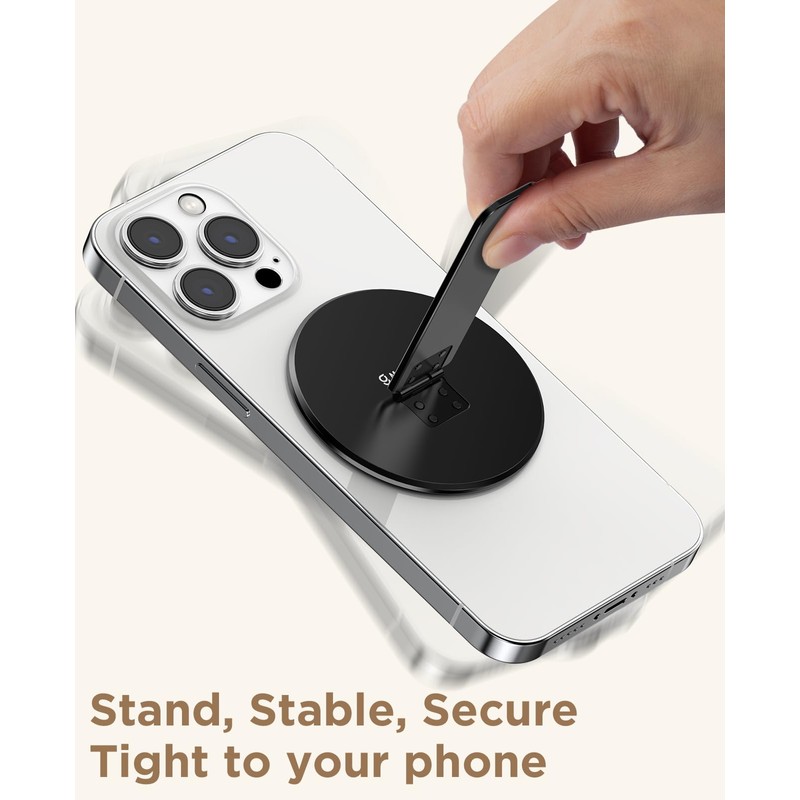 Magtame Magnetic Phone Kickstand Grip, 3 in 1 Snap-on Phone Stand, Holder & Grip, Foldable & Adjustable for Hands-Free Viewing | Compatible with Mag&Safe for Phone 16 15 14 13 12 Pro, Black