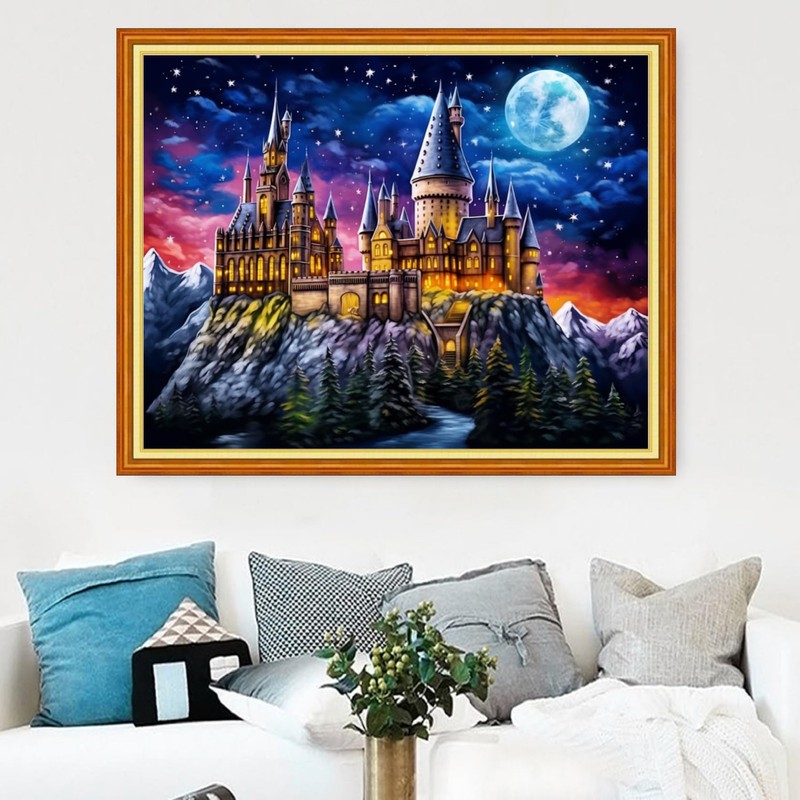 Magxvouy Cross Stitch Kits Stamped Full Range of Embroidery Kits,Cross Stitch Patterns Needlework Kits for Beginners 11CT Printed Kits&Moon Castle 16x20 inch