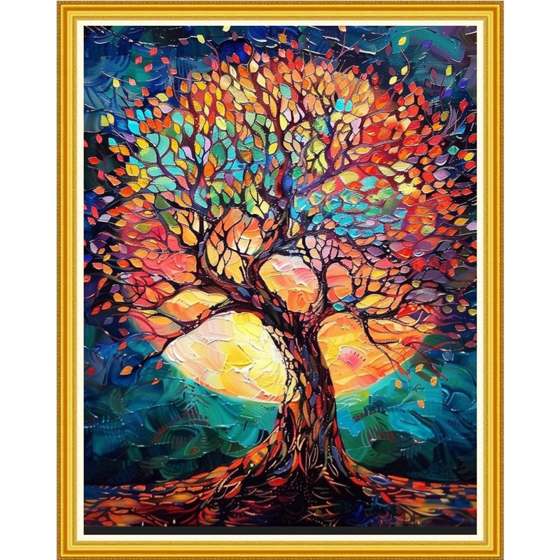 Magxvouy Cross Stitch Kits Stamped Full Range of Embroidery Kits,Cross Stitch Patterns Needlework Kits for Beginners 11CT Printed Kits&Moonlight Tree 16x20 inch