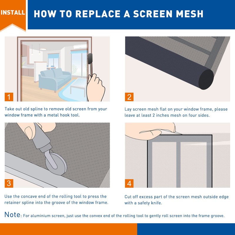 • 【Additional Notes for Window and Door Net】: Due to space limitation, screen replacement is FOLDED in the package. If there are some creases, please don't worry, it will disappear after taking out being tiled for a while.