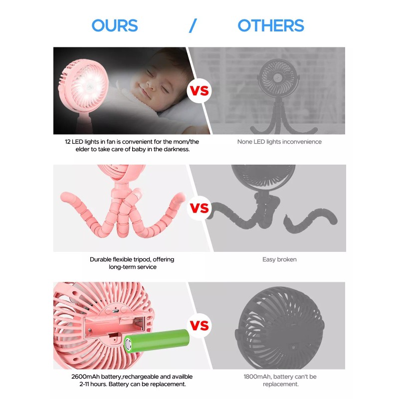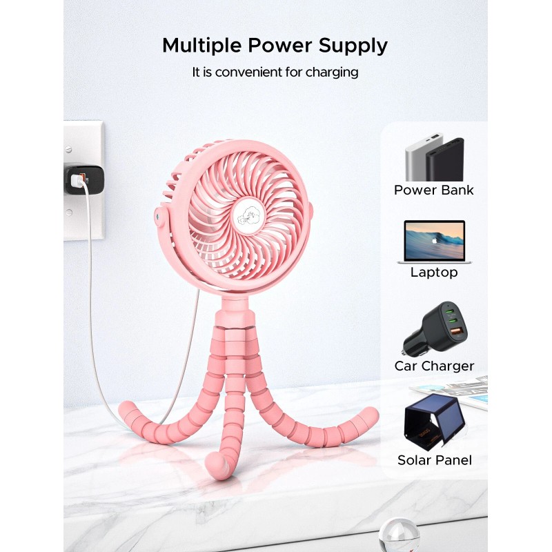MAH Portable USB Handheld Fan for Baby Flexible Tripod LED Lights For Stroller