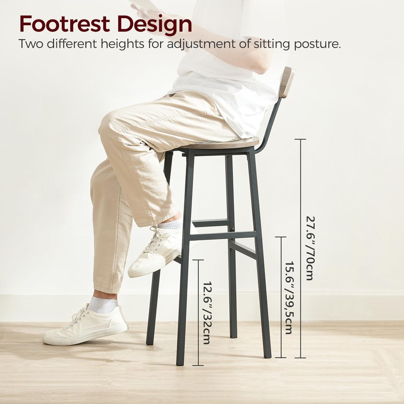 - Carefully Designed for More Coziness: The backrest design of the bar chair conforms to ergonomics, providing good support for the waist. With 2 different heights of footrests and a smooth panel, it can reduce your fatigue caused by busy life easily