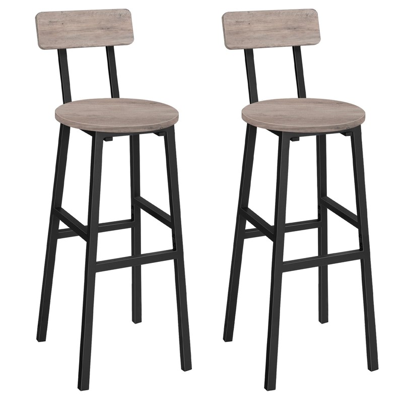 MAHANCRIS Bar Stools, Set of 2 Round Bar Chairs, 28 Inches BarStools with Back, Breakfast Bar Chairs with Footrest, Counter Bar Stools, for Dining Room, Kitchen, Bar, Greige BAHG27701