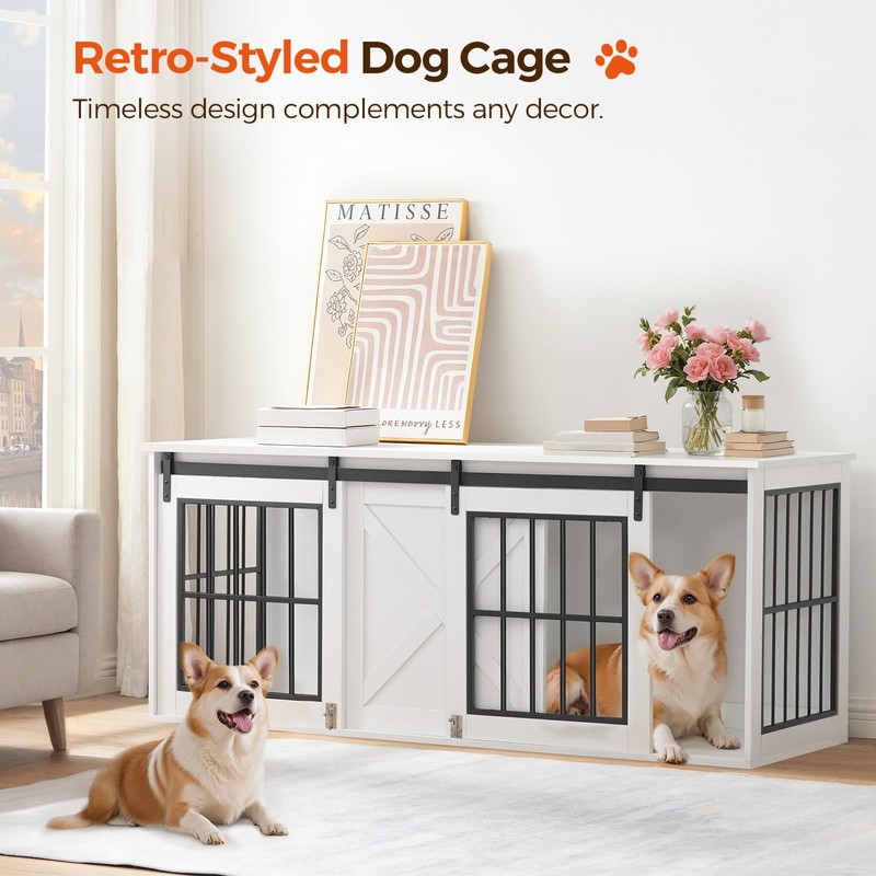 - Roomy Design for Companions: At 63.0"L x 21.7"W x 26.0"H, this dog crate furniture offers ample space for two medium or small dogs, thanks to an included divider. It's a thoughtful solution for homes where pets share their living quarters