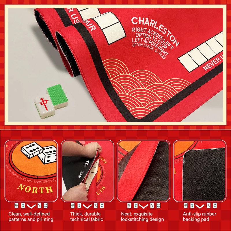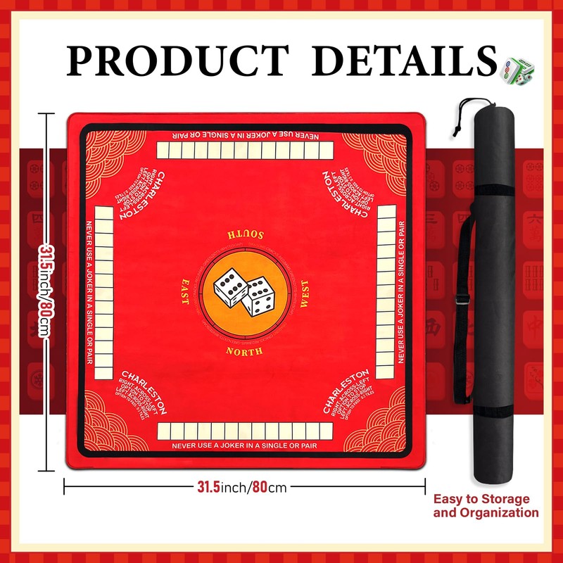 - High-quality & durable material : Our mahjong mat is made of thick, wear-resistant technical fabric that maintains its shape even after prolonged use ; Measuring 31.5" x 31.5" it features clear patterns and precision edging for lasting durability