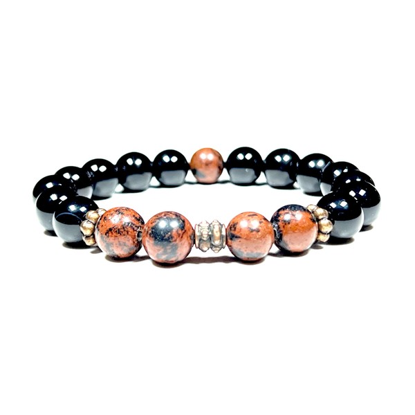 Mahogany and Black Obsidian Stretch Bracelet | 10mm Beads | October November December Birthstones for Scorpio Sagittarius | Root Chakra Grounding Beads (Wrist Size 6 Inches)