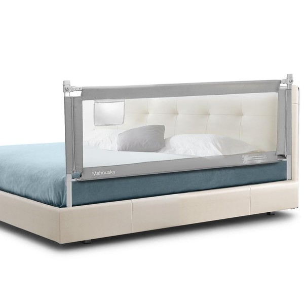 Mahousky Bed Rail, Height Adjustable Toddler Protection Guard with Storage Pocket and Double Safety Lock, Vertical Lifting Anti-Fall Beds Mesh Guardrail for Toddlers Kids (74.8 inch(1 Side))