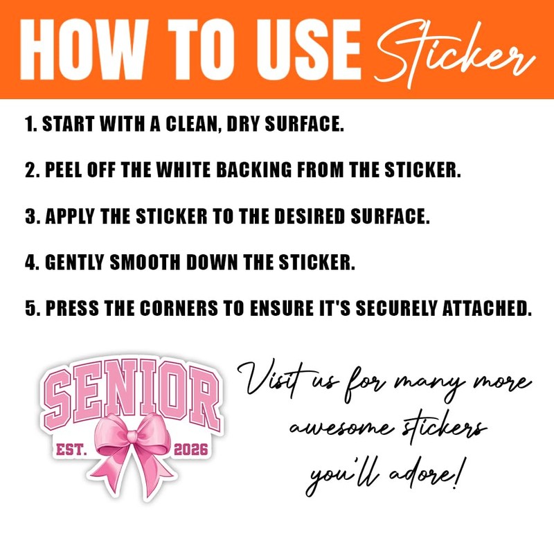 MAIANEY (3pcs, 3in) Senior 2026 Sticker with Pink Bow, Cute Class of 2026 Vinyl Decal for Girls – Aesthetic Graduation Sticker for Laptop, Water Bottle, Journal, Scrapbook