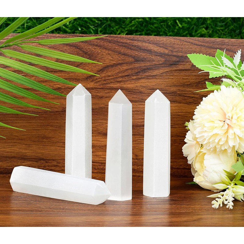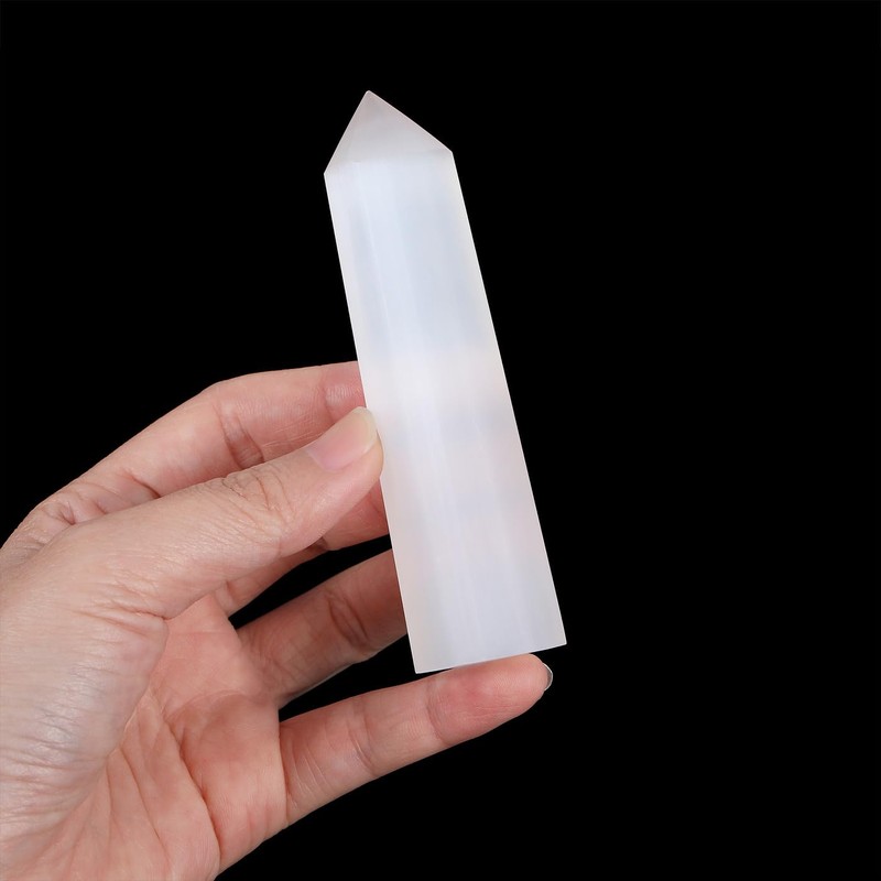 MAIBAOTA 4" Selenite Healing Crystals Wands Gifts for Beginners Hexagonal Point Tower Meditation Nature Reiki Polished Protection Decor Large Crystal 1pcs