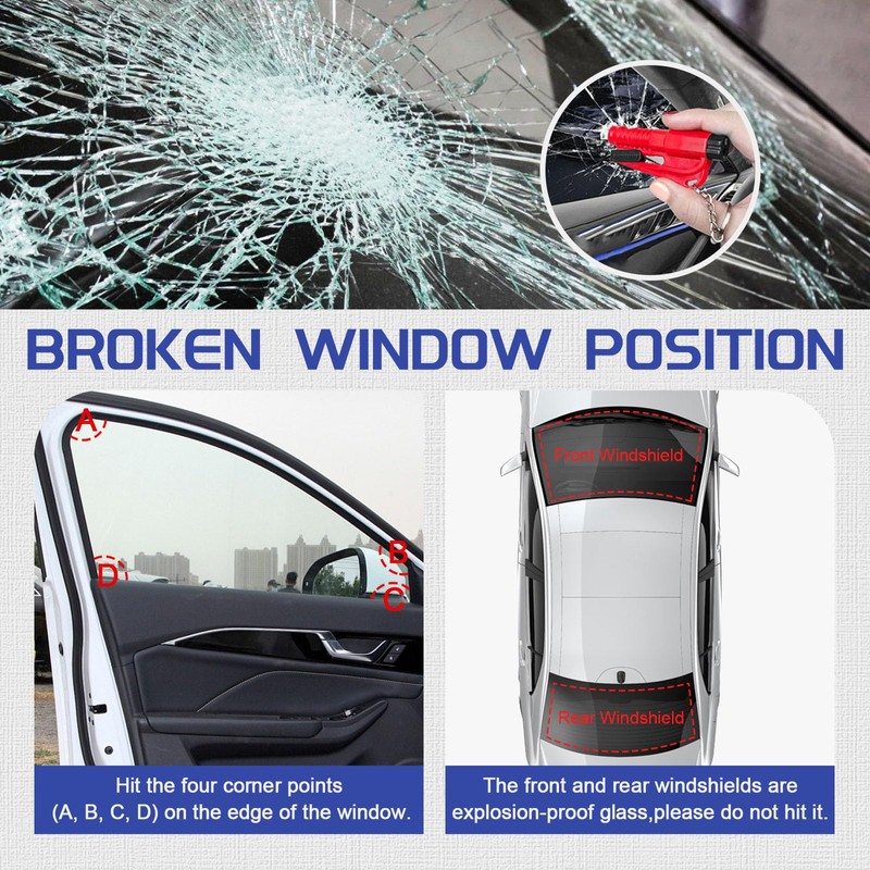 - 🚖【3 in 1 Window Breaker and Seatbelt Cutter】- Car window breaker tool serves both as a window breaker and a seat belt cutter. Emergency car window breaker provides peace of mind to yourself and your family on the road in case of car entrapment. Can be used in various situations such as rollover, car fire, floods, sinking car accident.