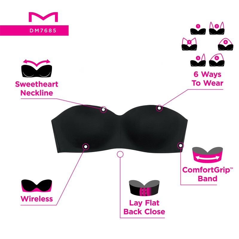 Maidenform Pure Comfort Strapless Bra, Wireless Bra with Stay-Put Fit, Full-Coverage Convertible Bra for Everyday Wear, Black, Small