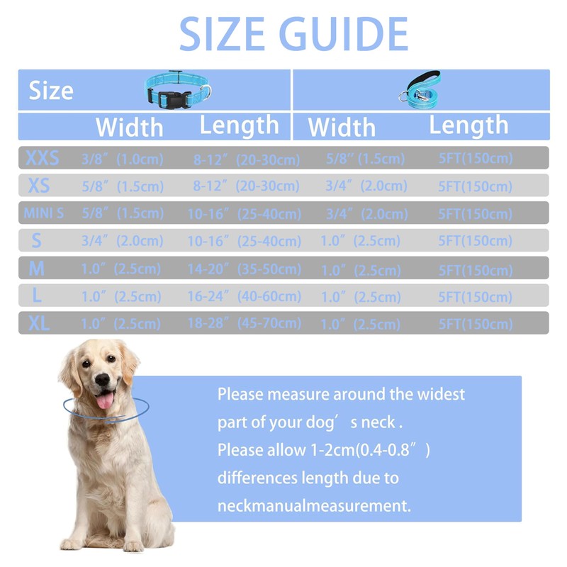 Maiiu Reflective Dog Collar with Safety Locking Buckle, Adjustable Soft Breathable Nylon Collars for Small, Medium and Large Dogs(Collar+Leash M Sky Blue)