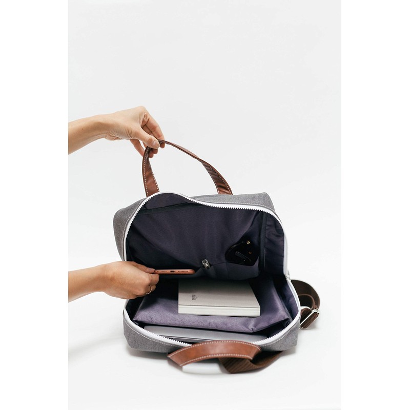 - Nylon straps are adjustable; a pair of vegan leather handles allow you to carry the backpack like a tote
