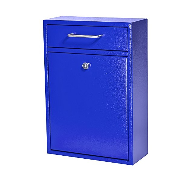 Mail Boss 7424 High Security Steel Locking Wall Mounted Mailbox Office Drop Comment Letter Deposit Box, Blue