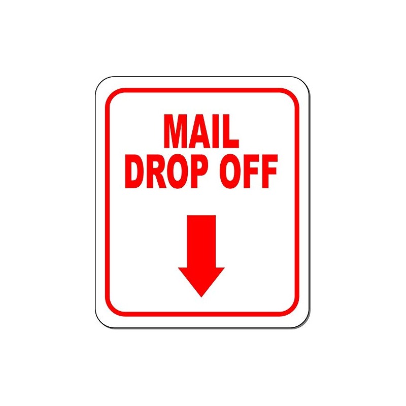 MAIL DROP OFF DIRECTIONAL DOWNWARD ARROW RED Aluminum Composite Outdoor Sign 8.5" x10"