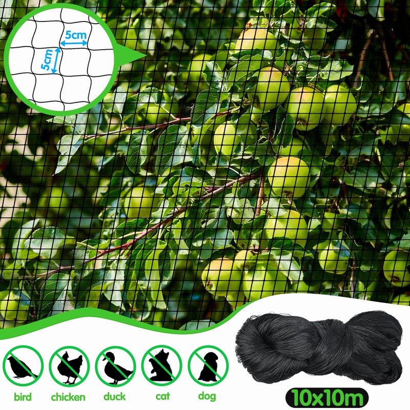 - Size: the mesh size of our bird safe net is 5cm x 5cm, the mesh size with large opening is better for the safety of animals, after being fully stretched, the width is 10m and the length is 10m, which is large enough for you to cover your orchard or farm.