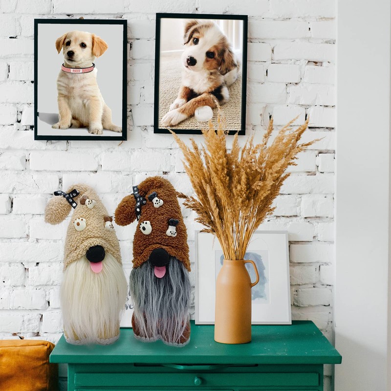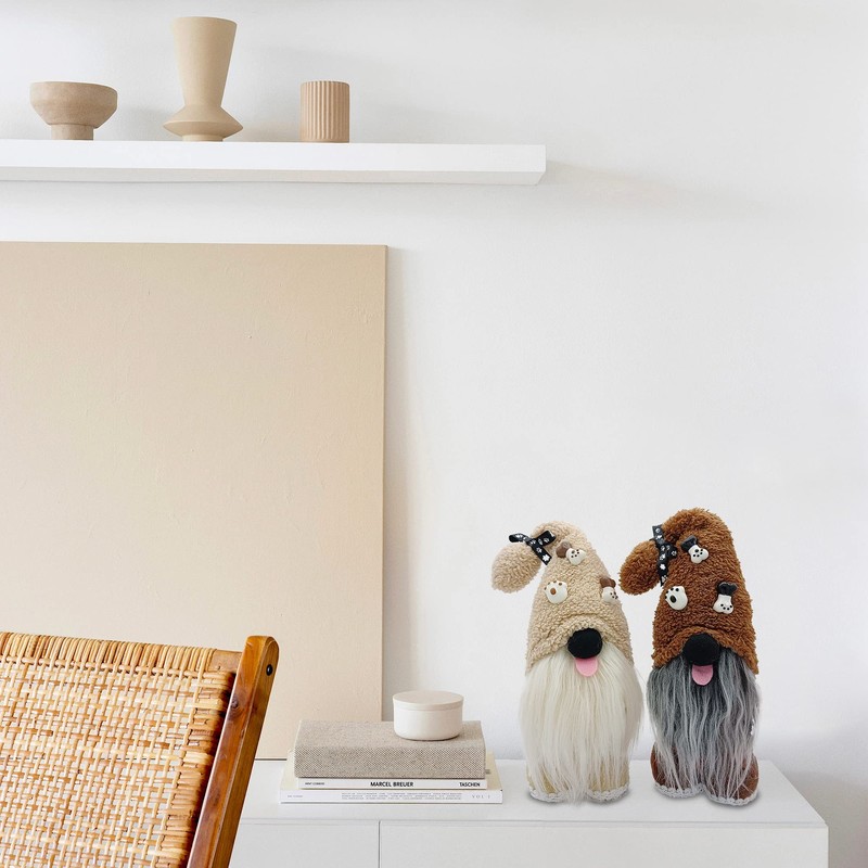 Mailin 2Pcs Dog Gnomes Puppy Doll Gnomes Plush Handmade Scandinavian Swedish Tomte Ornament Gnome Decorations for Home Tiered Tray Décor
