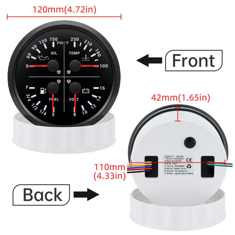 - Fuel Level / Oil Pressure / Volt & Water Temperature 4 In 1 Multi-Function Gauge.