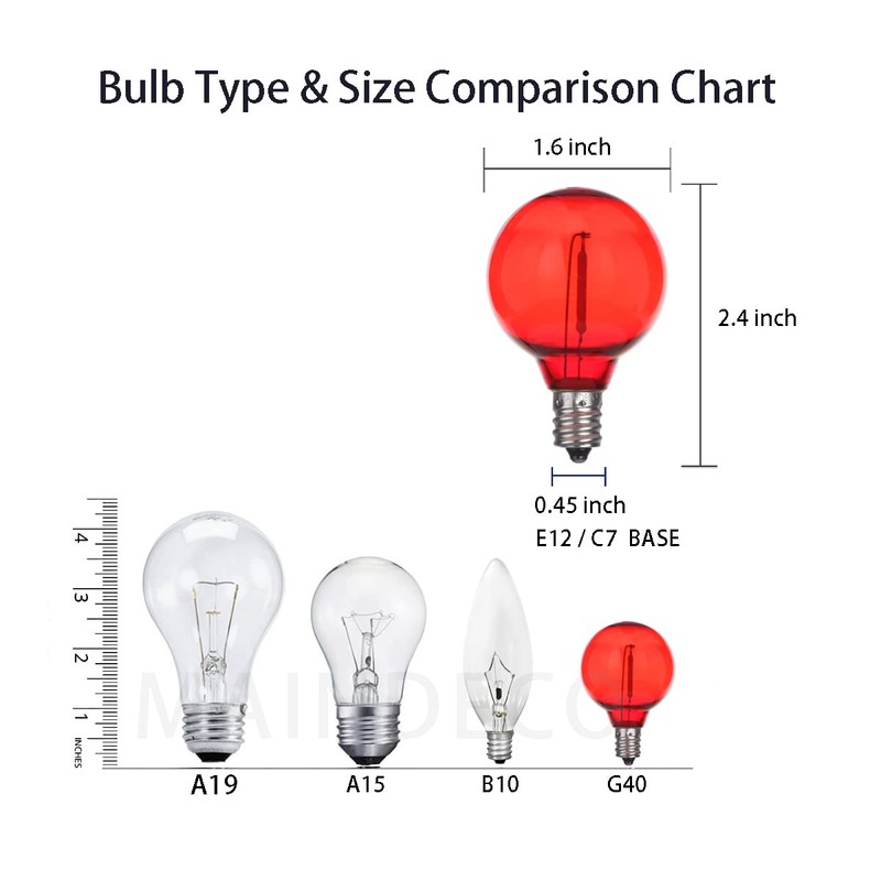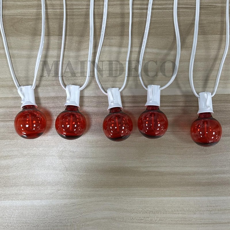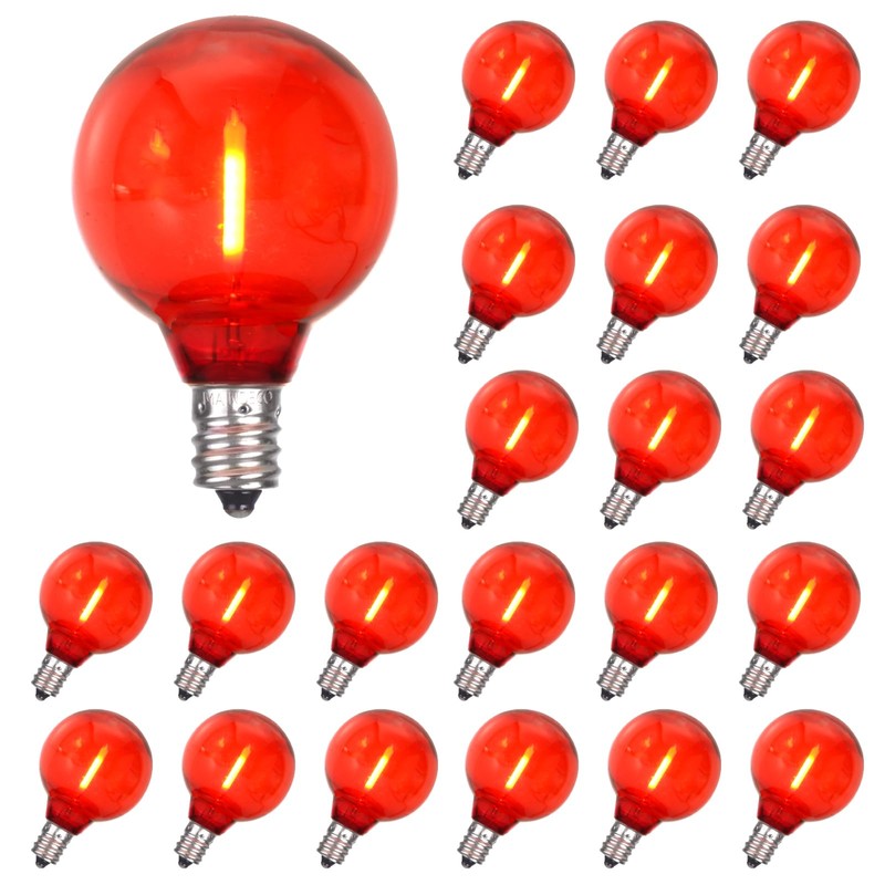 Bulb Type: G40 Material: Plastic (waterproof and shatterproof ) Color: Clear Red Wattage: 0.5W,120V Quantity: 25 count